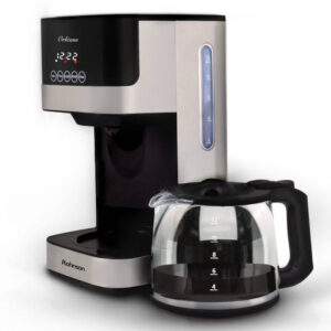 Η μεγάλη γυάλινη κανάτα 1.5 λίτρου με ένδειξη στάθμης σερβίρει μέχρι και 12 κούπες καφέ.